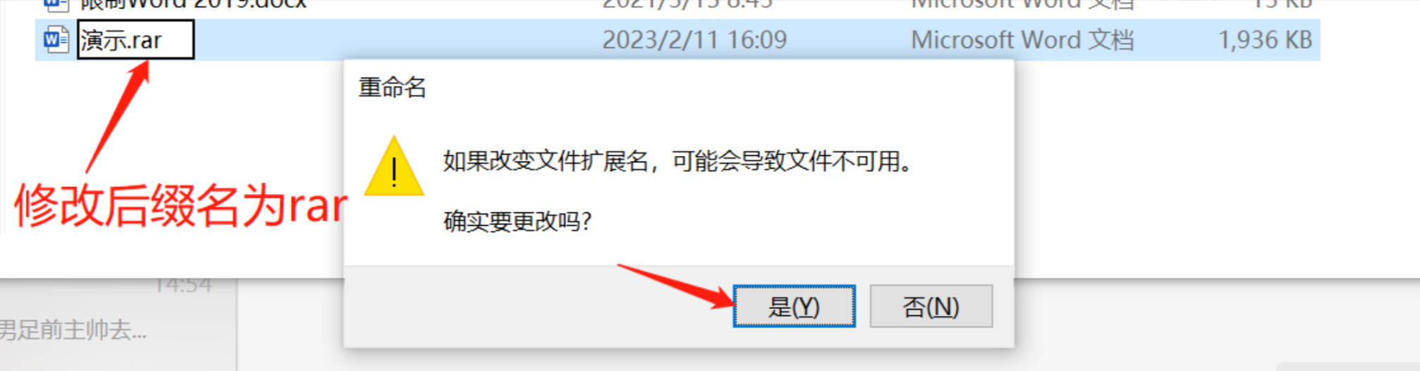 2. 把Word文件后缀改成.rar(比如"文档.docx"改成"文档.rar")