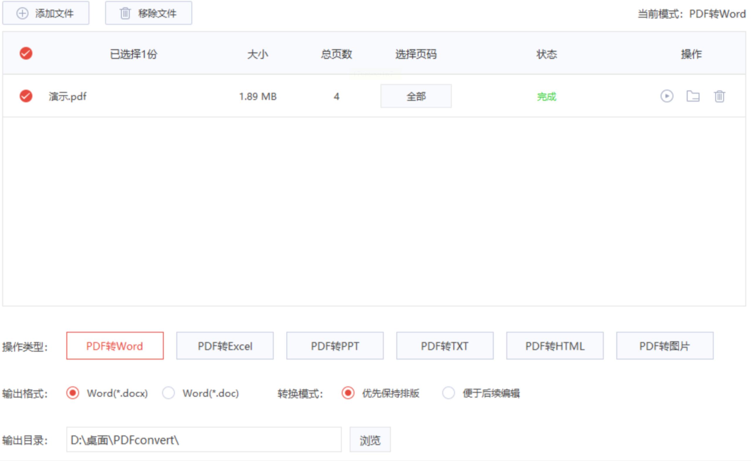 添加完PDF文件后,你还需要设置图片的保存位置。软件底部有个"浏览"按钮,点一下就能选你想把图片存到哪个文件夹,比如桌面的"我的图片"文件夹。