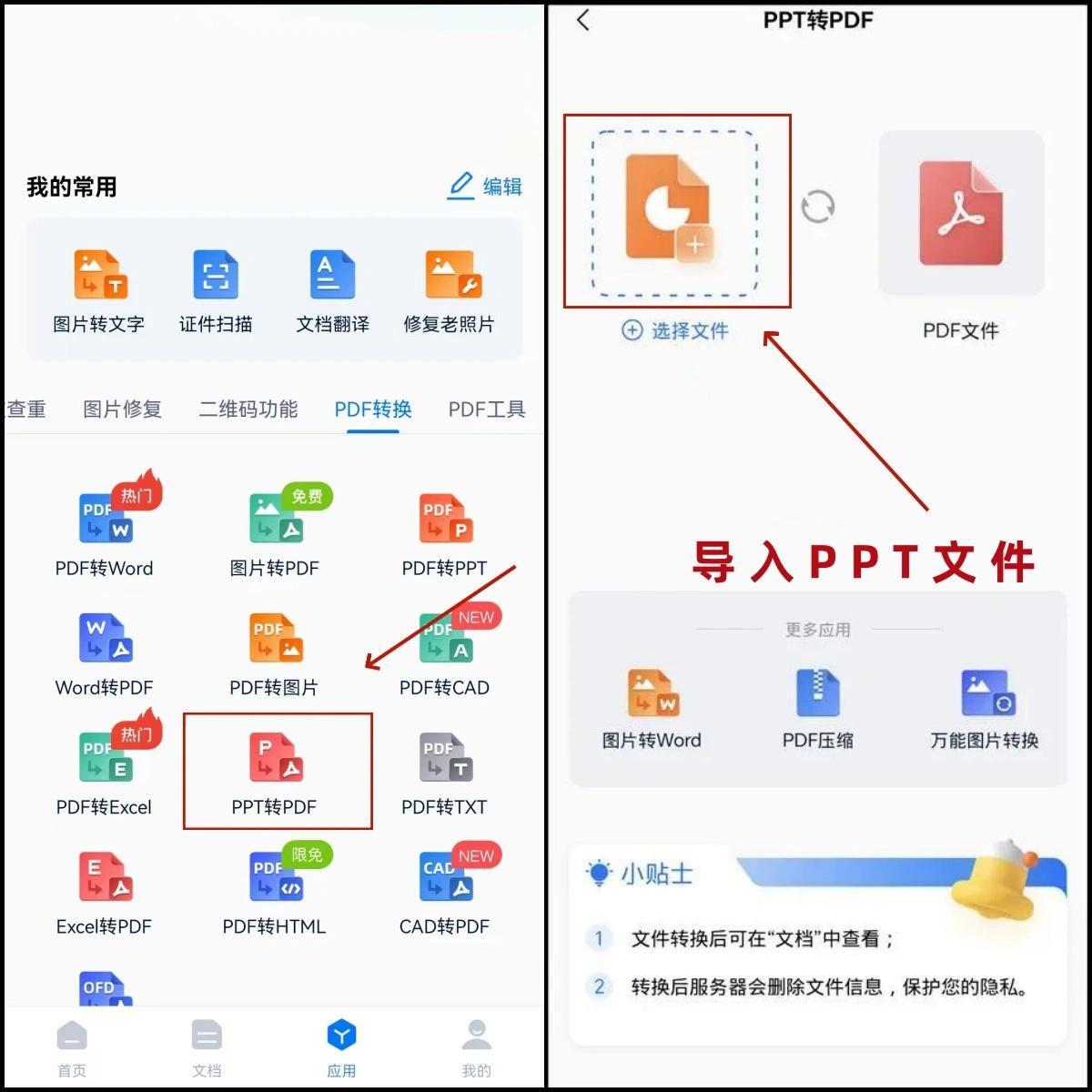 1. 打开APP,点“PPT转PDF”:打开手机里的APP,首页就能看到“PPT转PDF”,直接点进去