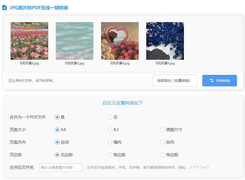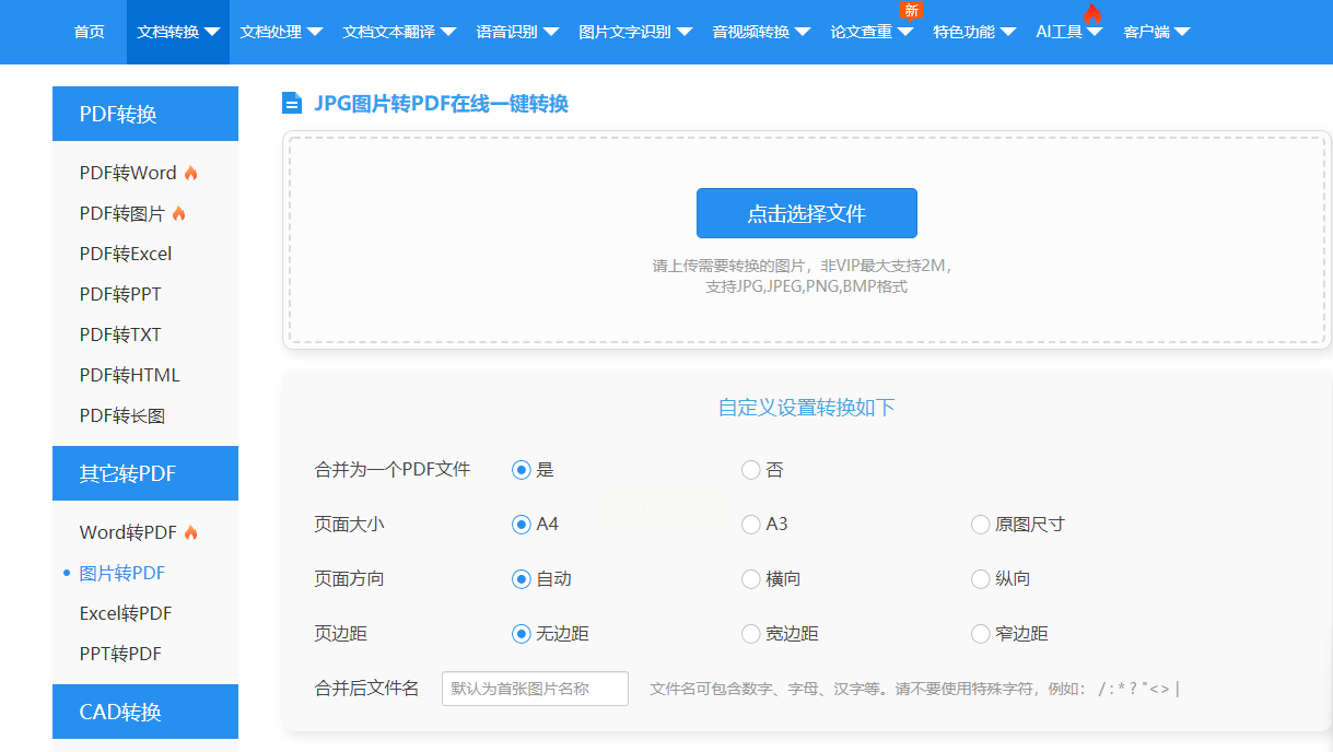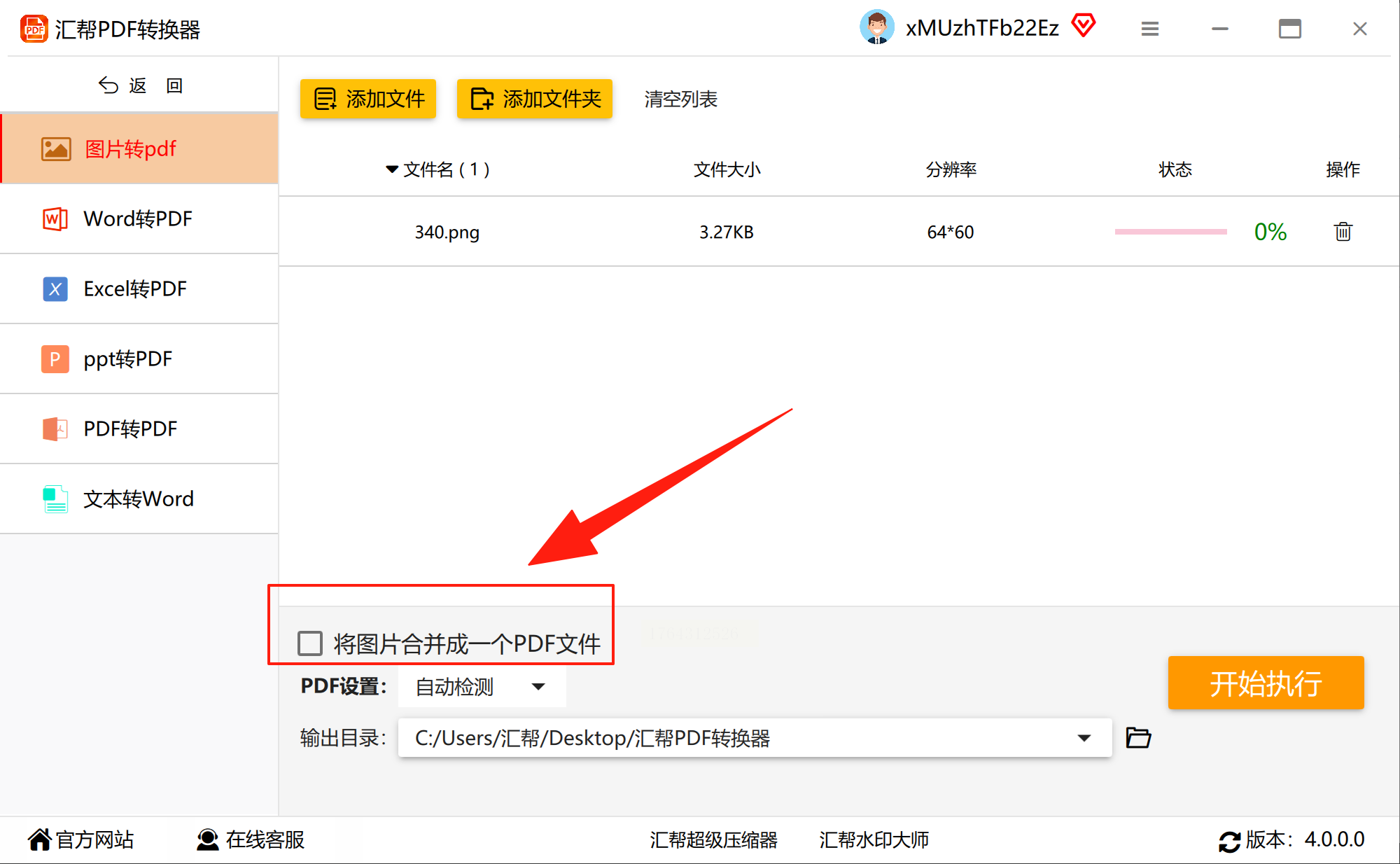 3. 勾选“合并图片”选项可将多张图片整合为单页PDF(单张图片可忽略)