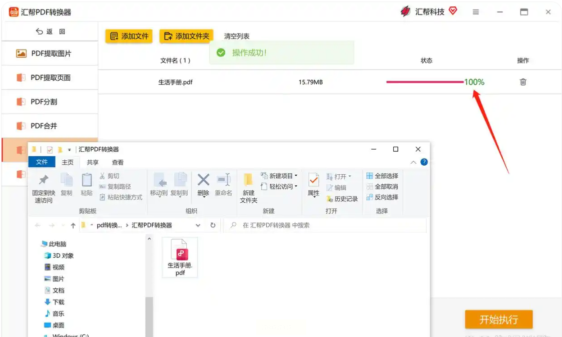 步骤八:盯着【状态】栏看进度,到100%时,软件会弹提示说加密完成。同时,它会自动打开你刚选的保存文件夹。
