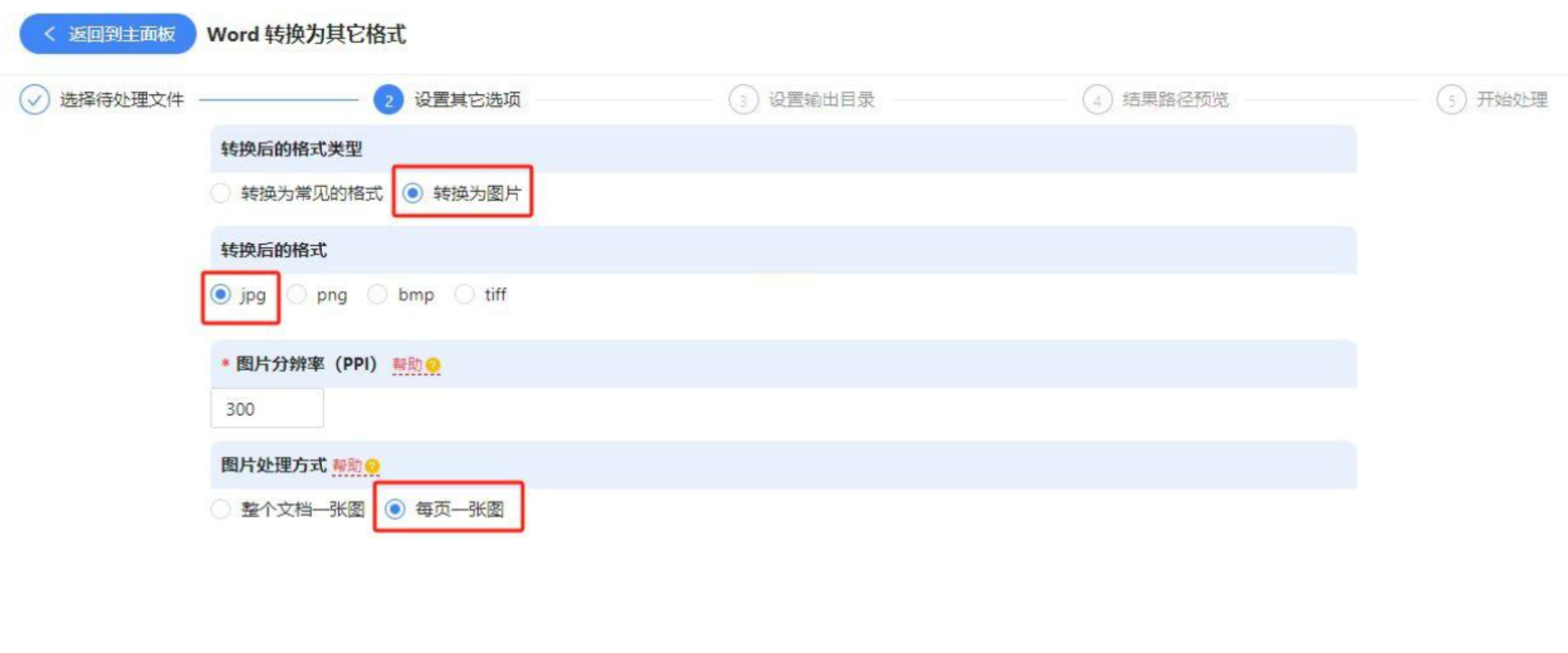 在右侧参数面板中,选择输出格式为“JPG”。若需调整图片清晰度,可通过“设置”按钮调整分辨率(如300dpi适用于打印场景,72dpi适用于网页展示)。此外,还可选择是否保留原文档格式中的表格边框、图片等元素。