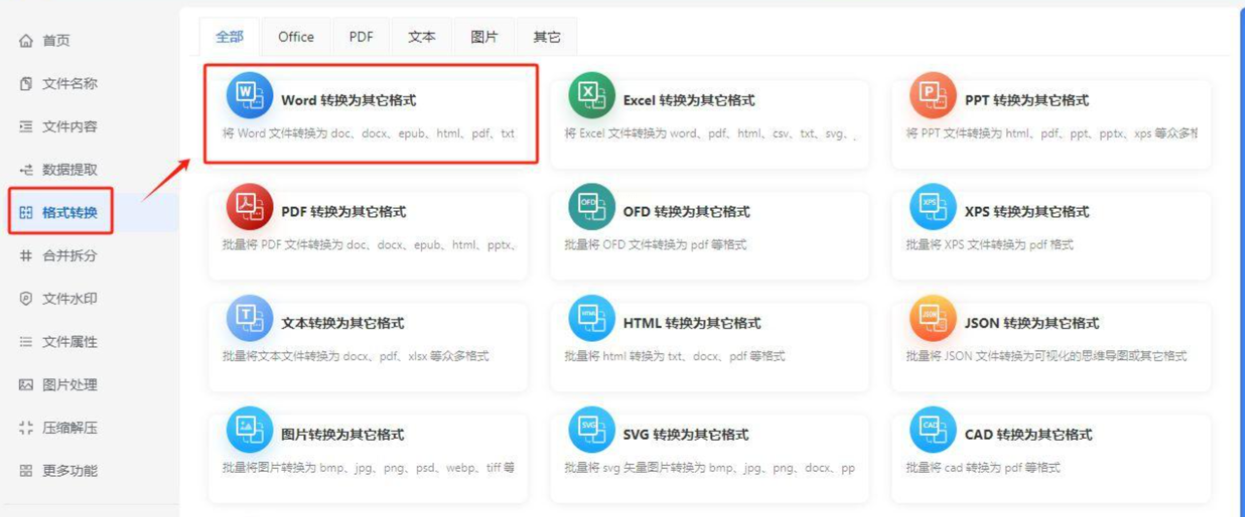 1. 打开软件,点击左侧“格式转换”→“Word转换为图片”;