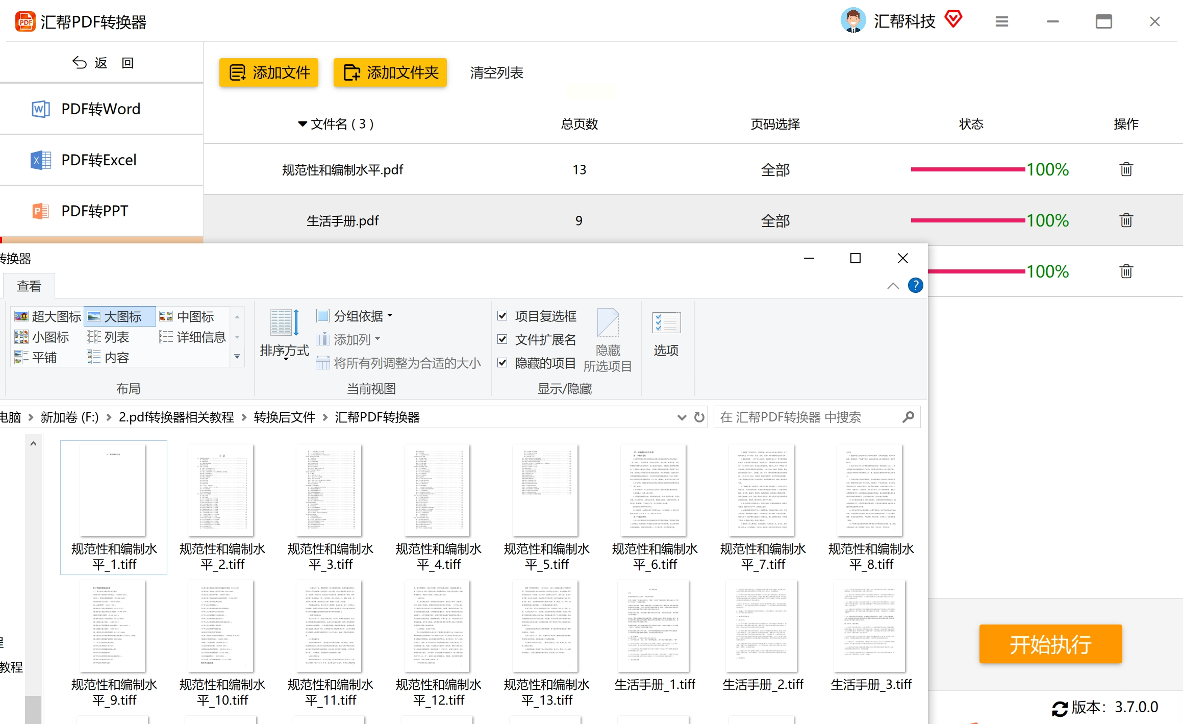 6. 开始转换: 点击右下角的“开始执行”按钮,软件将开始对文件进行转换。