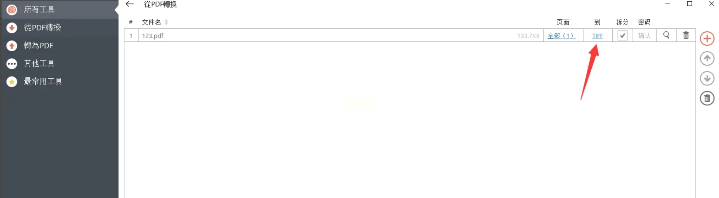 2. 选择“PDF 转 TIFF”: 在软件界面中,找到并点击 “PDF 转 TIFF” 选项,确认转换目标格式。