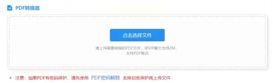 2. 上传PDF文件:点击页面上的"选择文件"按钮,从电脑中选择需要转换的PDF文件。支持单个或多个文件上传。