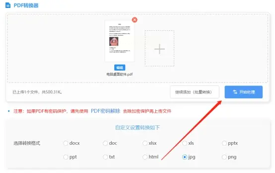 5. 开始转换:点击"开始转换"按钮,系统会自动处理PDF文件。转换时间取决于文件大小和数量,通常几秒钟到几分钟不等。