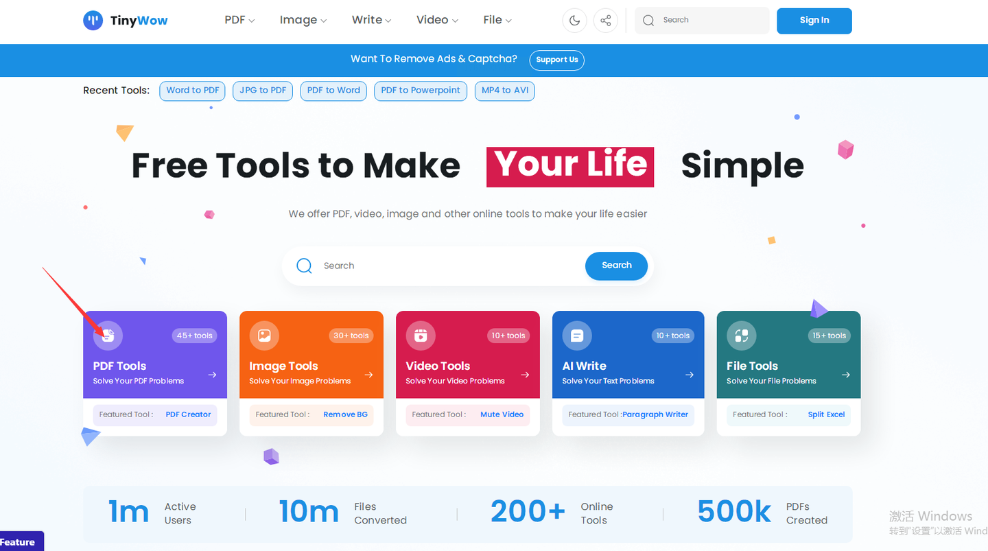 步骤一:进入网站后,找到“PDF Tools”板块。