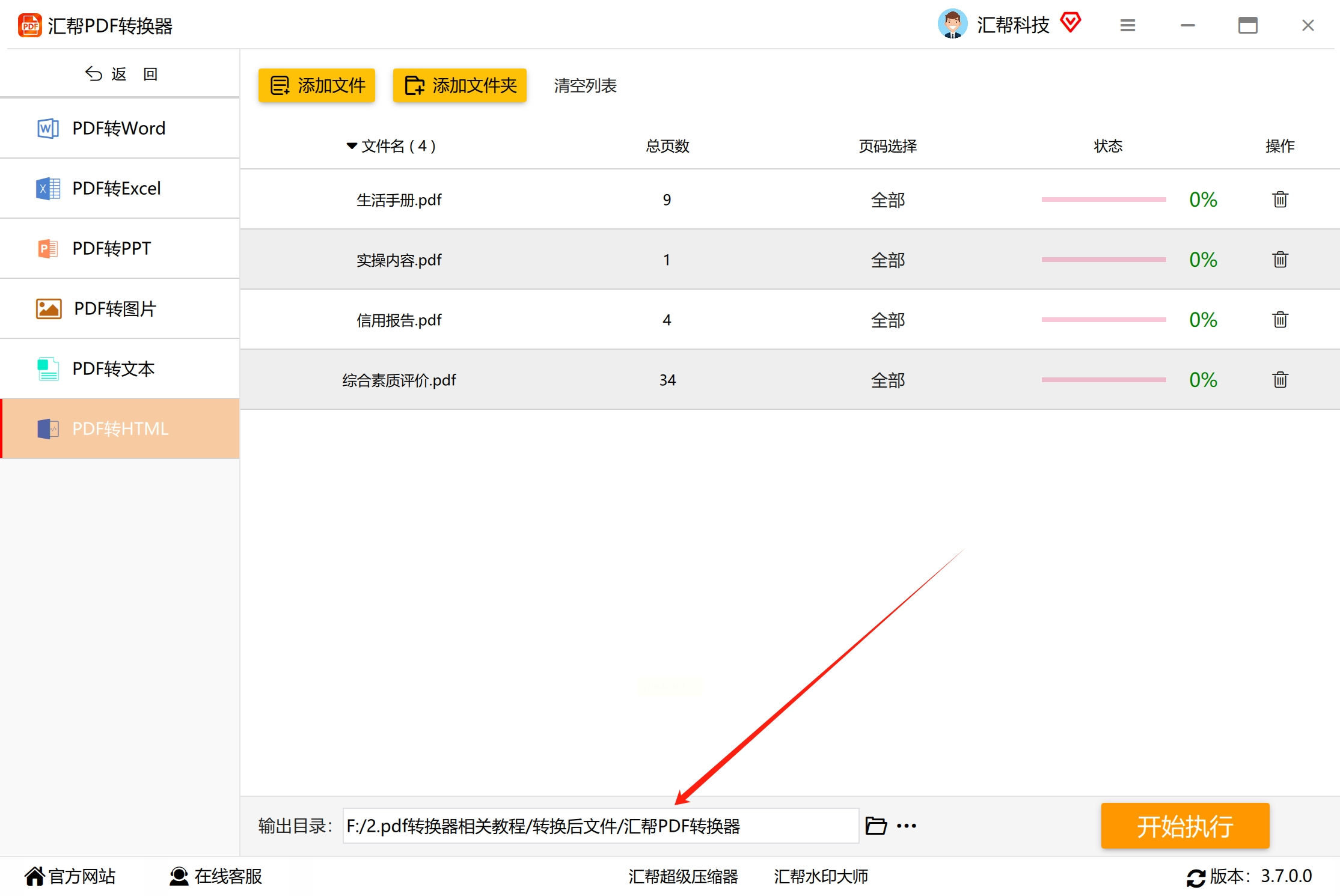 4. 选择输出路径:在界面下方设置转换后HTML文件的保存位置