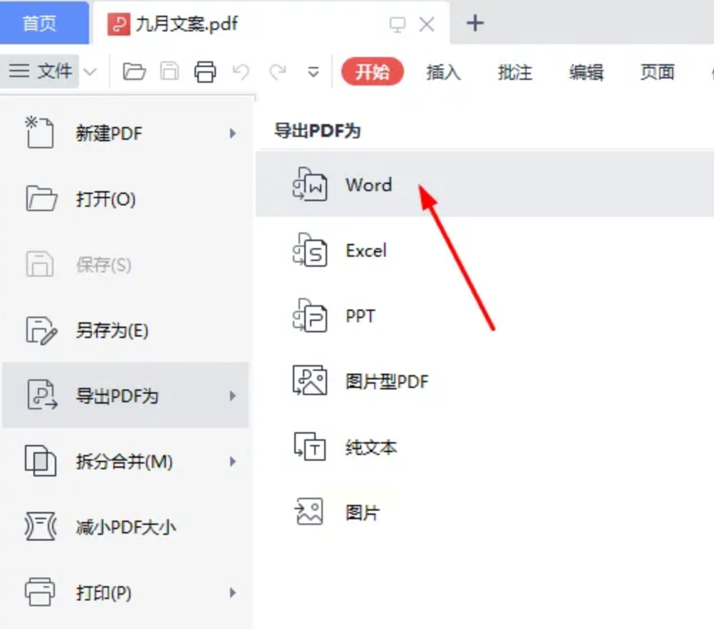 2. 导出为Word:点击左上角「文件」→「输出PDF为Word」,设置输出参数(如仅转换指定页码)