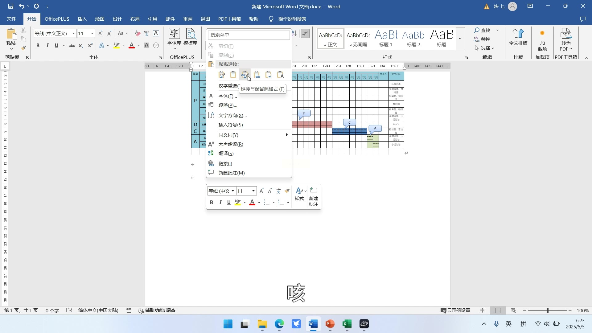 步骤二、切换到目标Word文档,将光标移动到计划插入表格的位置。