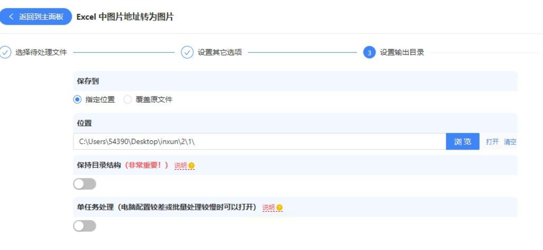 5. 设置输出路径:指定转换后的JPG文件的保存路径,可以选择与原始Excel文件相同的目录,也可以自定义保存位置。