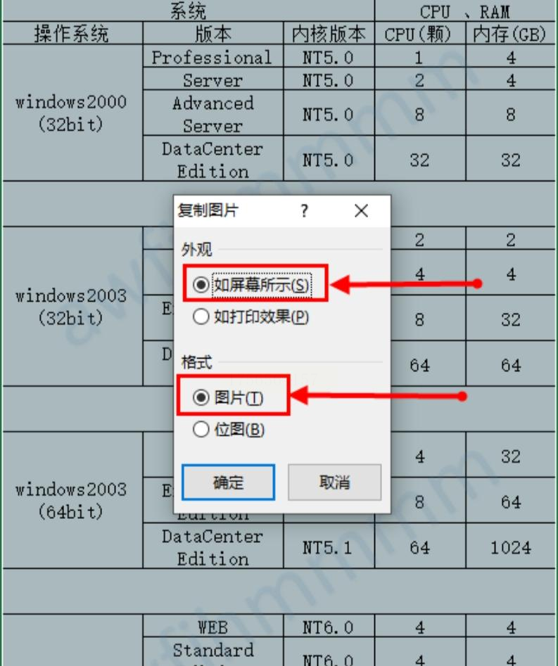 4. 设置参数:在弹出的窗口中,选择「外观如屏幕所示」,并确认输出格式为图片类型,点击「确定」按钮。