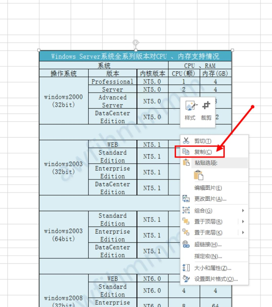 5. 粘贴图片:在Excel工作表的空白位置,右键点击选择「粘贴」或使用快捷键「Ctrl+V」,将内容以图片形式粘贴。