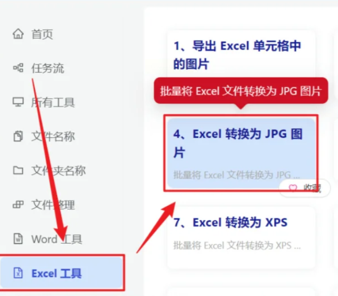 2. 选择转换功能:在工具列表中找到「Excel转换为JPG图片」的功能模块。