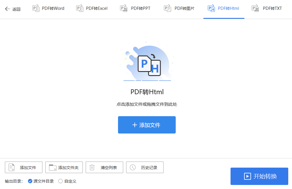 在界面右侧的「输出设置」区域,可选择「自定义路径」或使用默认存储位置(默认为软件安装目录下的「输出文件」文件夹)。对于多格式混合转换需求,还可开启「保留源文件格式特征」开关,确保转换后的HTML文件保留原PDF的排版结构。