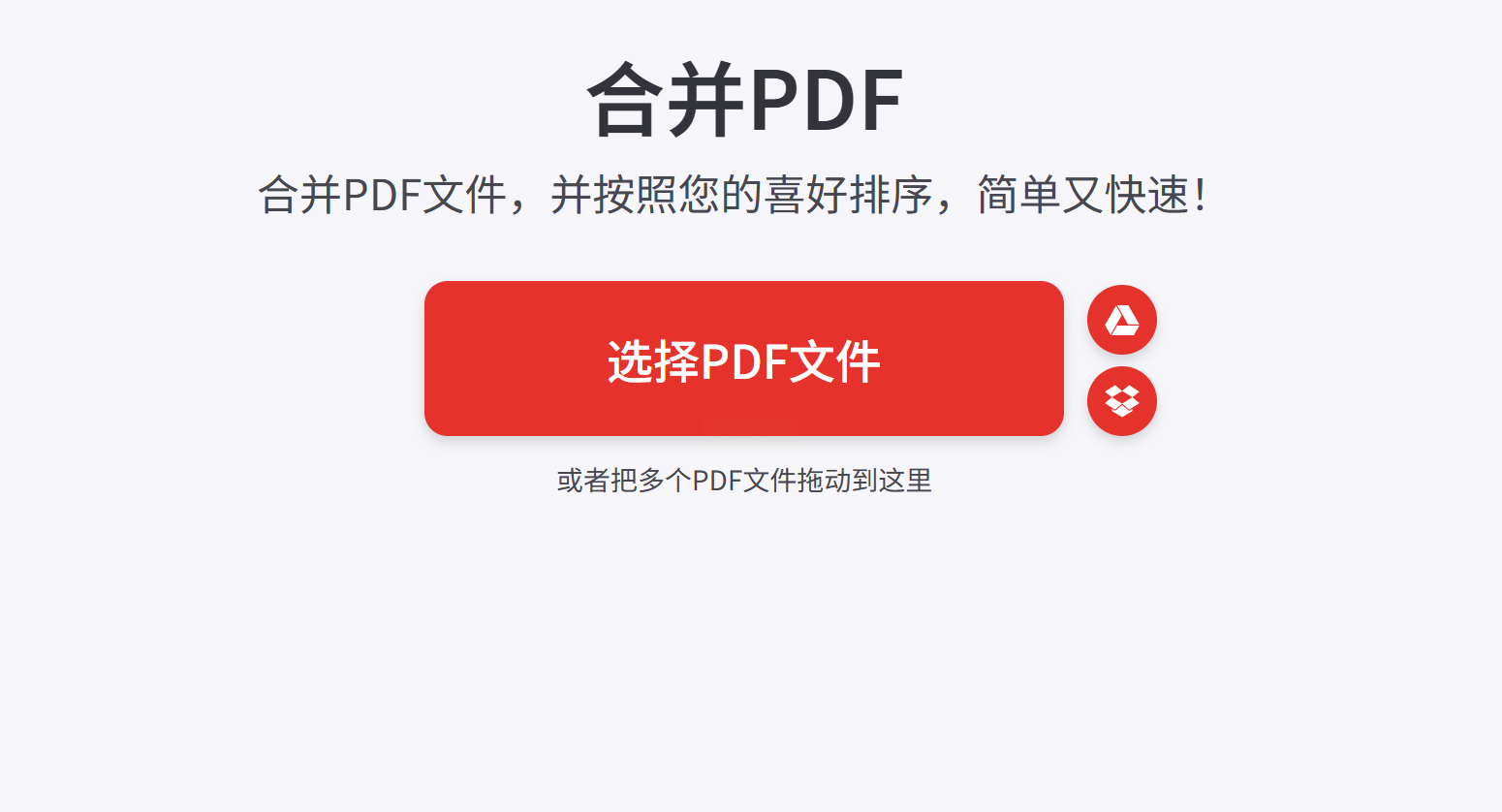 1. 进入官网选择"Merge PDF"工具,界面分为"文件上传区"和"设置区"