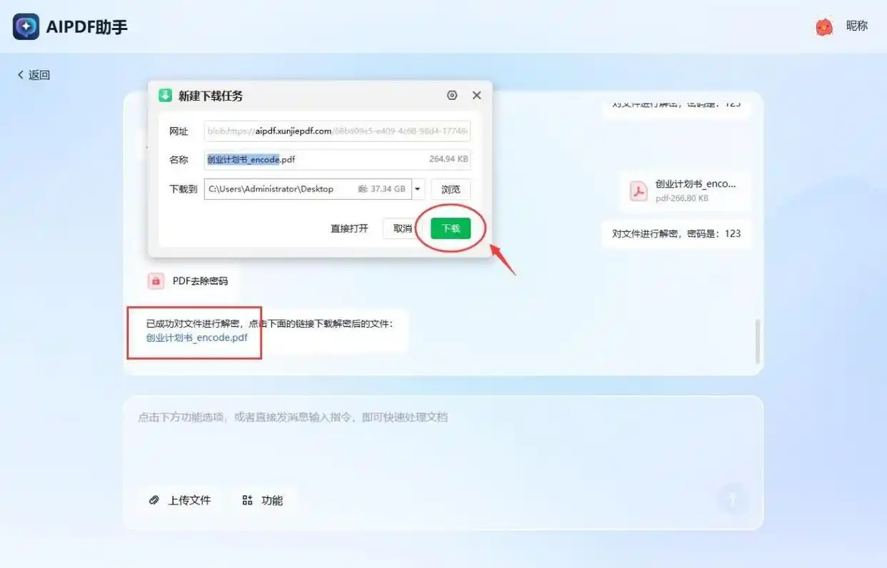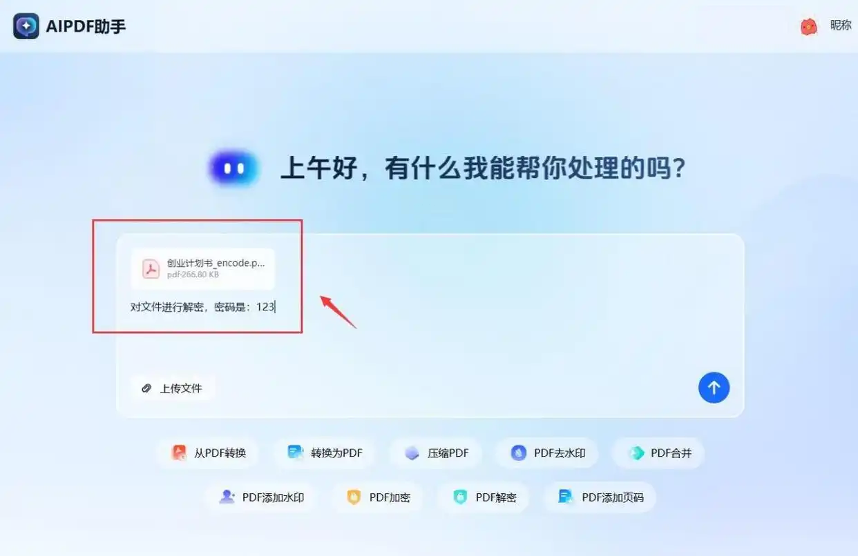 - 用自然语言对话就能说明需求,比如“解密这个PDF”