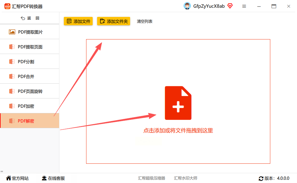 - 界面简洁,功能分区清楚,找“解密PDF”很容易