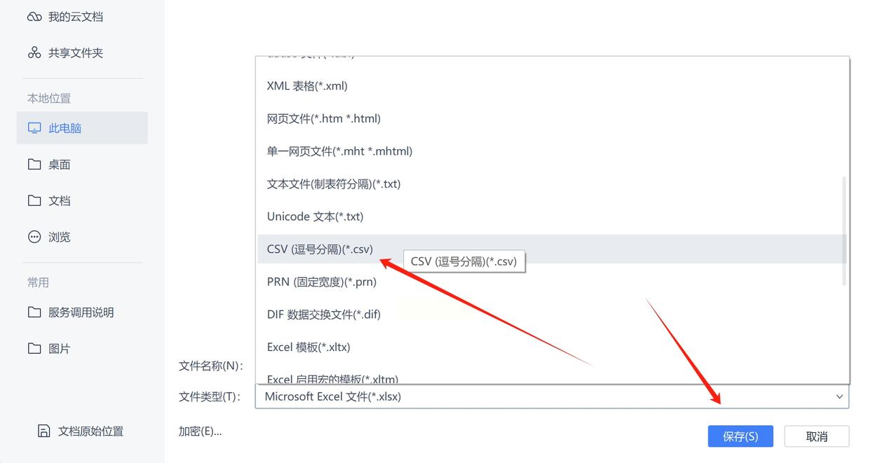 选好后,在上方的文件名那里改个名字(比如原文件是“数据表.xlsx”,你可以改成“数据表.csv”),位置选好后点“保存”。
