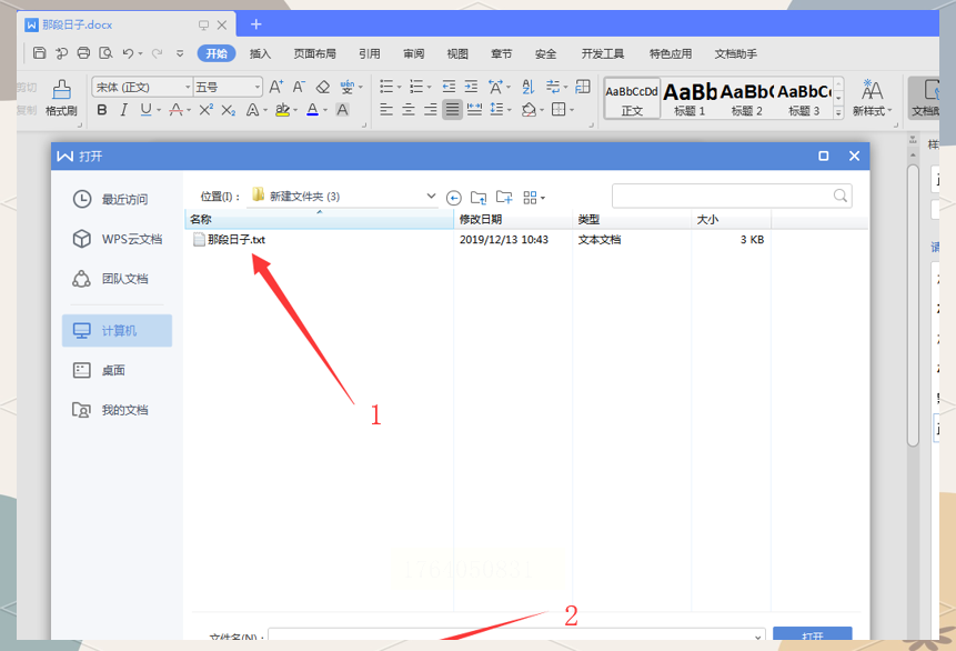 步骤三:文件类型筛选为“所有文件”,找到并选中目标TXT文档