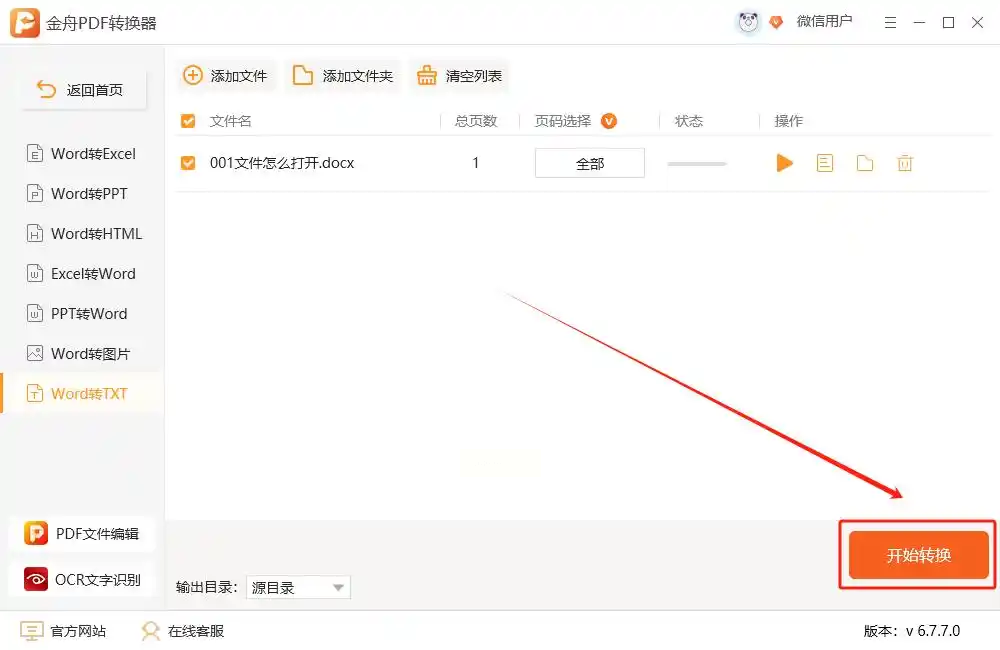 步骤二:选择转换类型为“Word转TXT”(注:实际需选择TXT转Word功能)