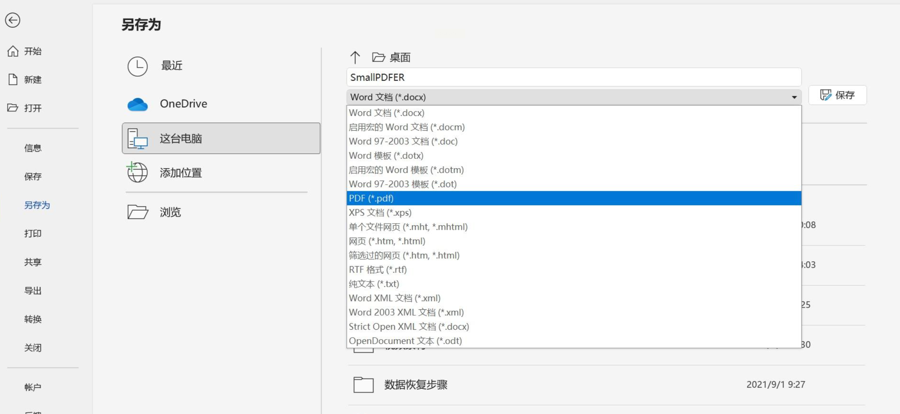 - 点击“保存”后,Word会自动生成PDF文件并打开预览。