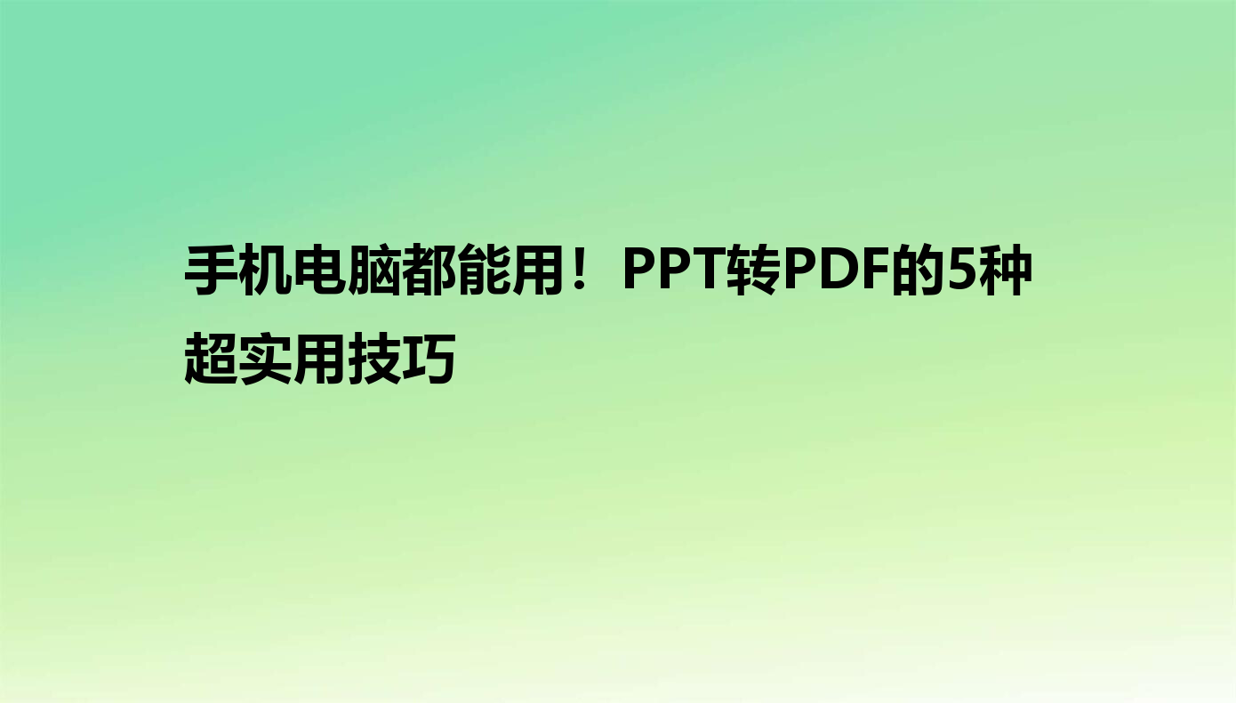 在日常工作和学习中,我们经常需要把PPT文件转换成PDF格式。为什么呢?因为PPT虽然动态效果丰富,但在不同设备上打开时,很容易出现格式错乱、字体显示错误甚至动画丢失的情况。而PDF格式就像"文档界的保险箱",无论在电脑、手机还是平板上打开,内容都能保持一致,打印出来也不会变形。不过,很多朋友可能会纠结:到底用哪种方法最方便?今天就给大家带来5种亲测好用的PPT转PDF方法,从电脑软件到手机APP,总有一款适合你!