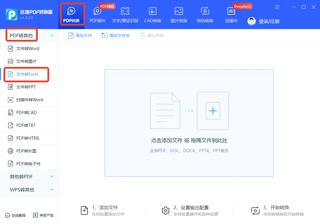 步骤一:成功安装并启动软件。在主界面上,您会看到清晰的功能分类,请找到并点击“PDF转文件”核心功能。