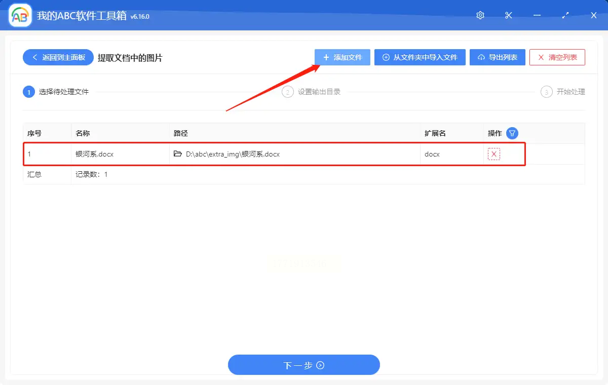 2. 选择提取功能:在子菜单中找到"提取图片"选项,点击"添加文件"