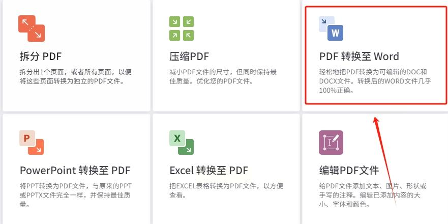 打开浏览器进入工具网站,在转换工具区选择PDF转Word功能。这个方案最适合在外出差时使用,不用安装任何软件。