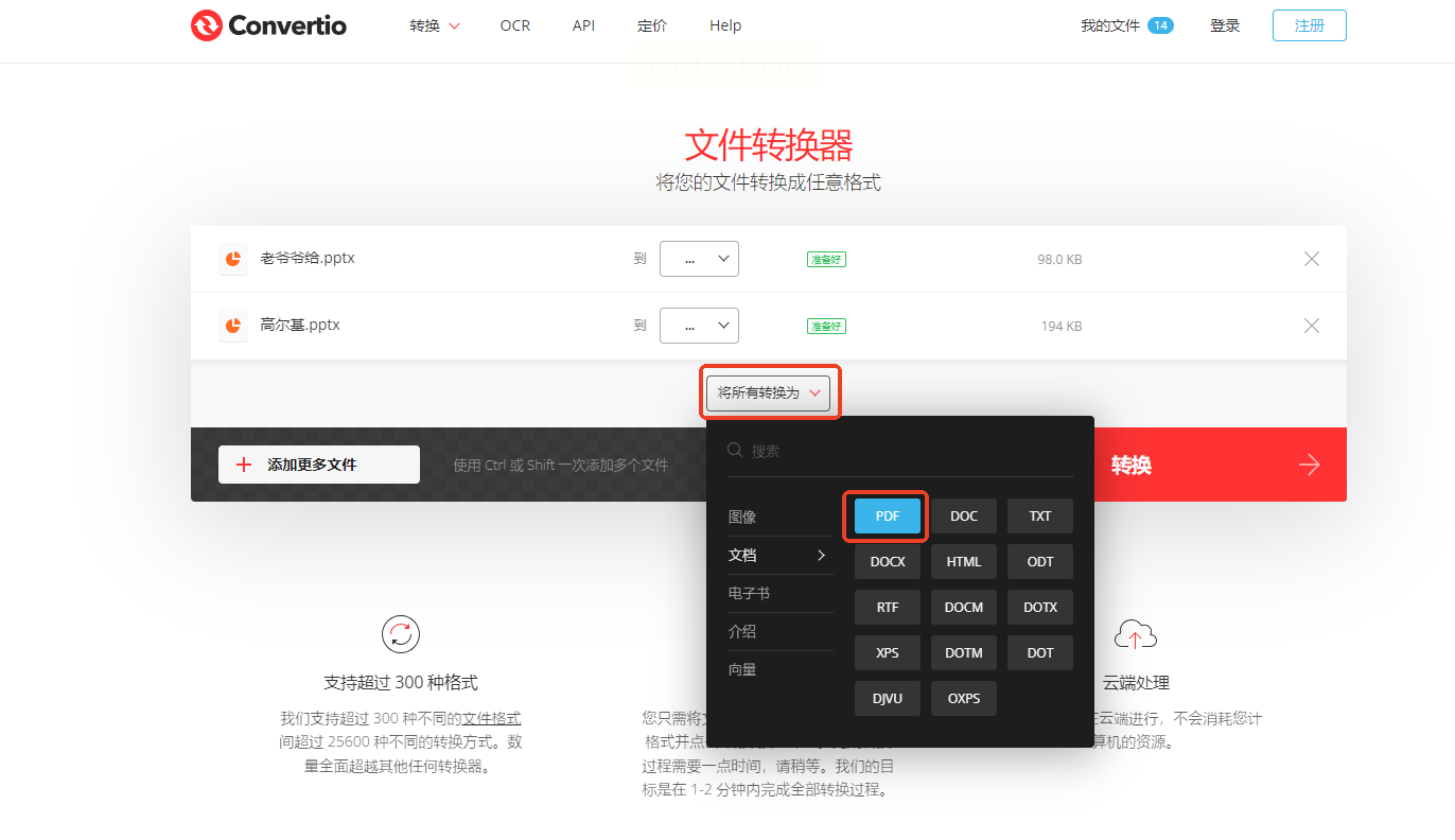 适用场景:极简需求,非敏感文件,快速获取转换结果