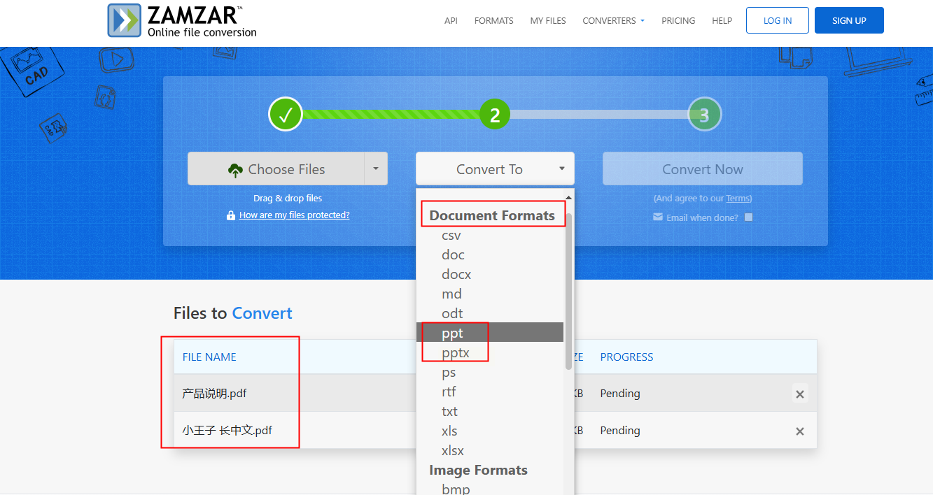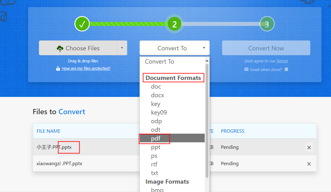 1. 进入官网,点击【Choose Files】上传PPT(可同时选3个文件,支持拖拽)
