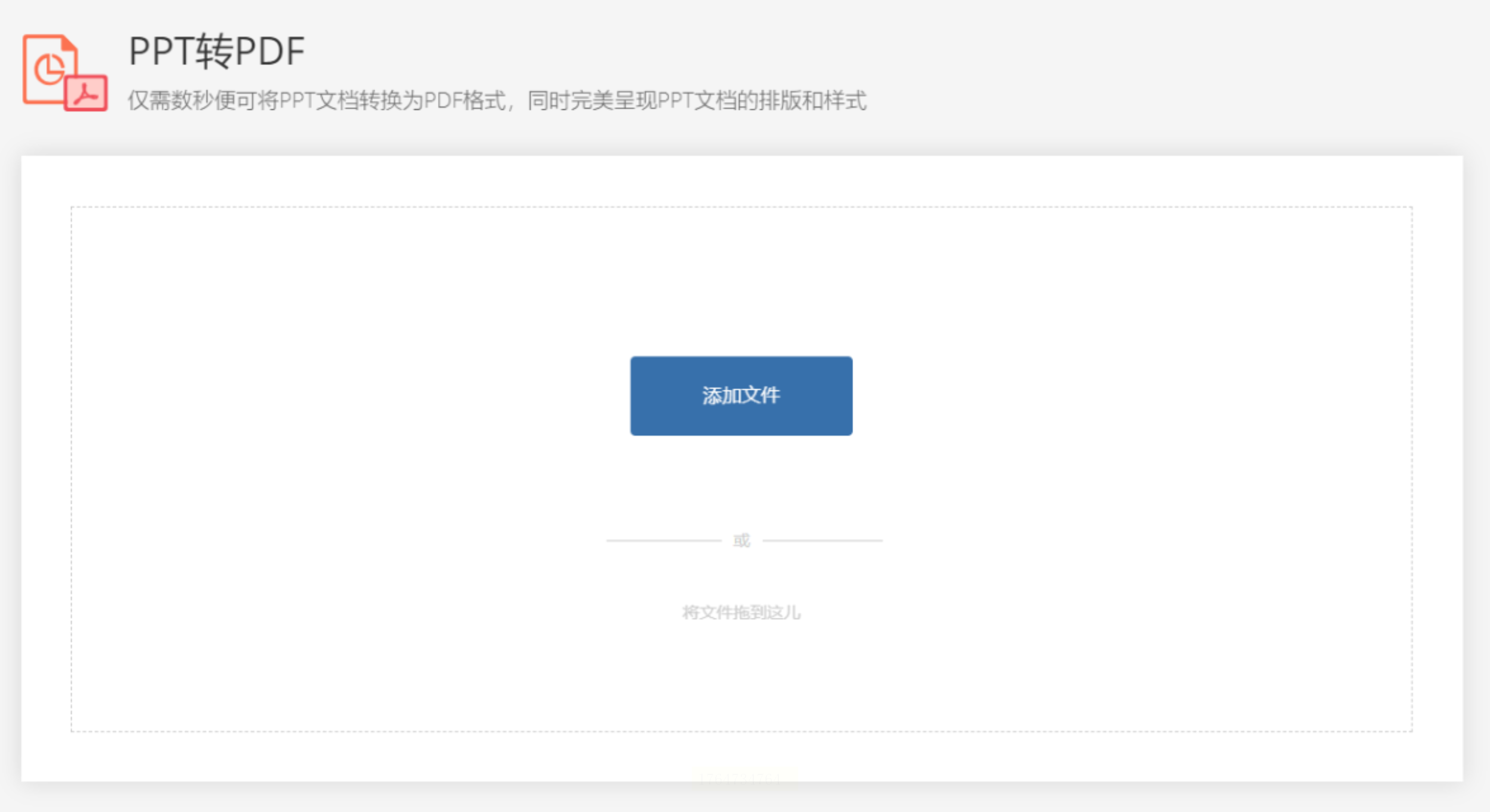 2. 点击中央【选择文件】按钮,从本地或云存储中上传PPT(支持拖放操作)