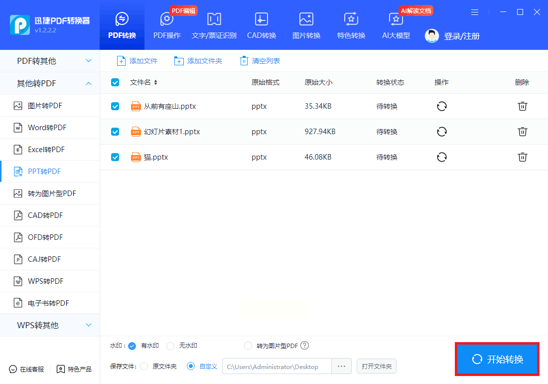 适用场景:批量转换PPT文件,需长期稳定使用,注重隐私安全