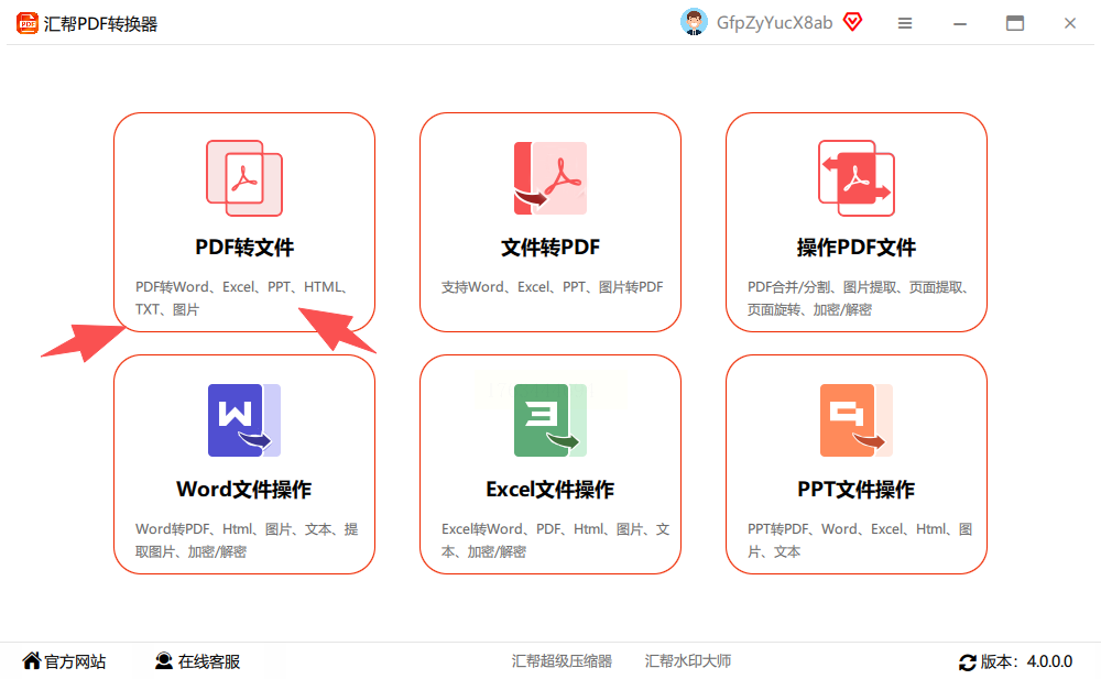 步骤一:打开软件后,在主界面选择“PDF转文件”功能。
