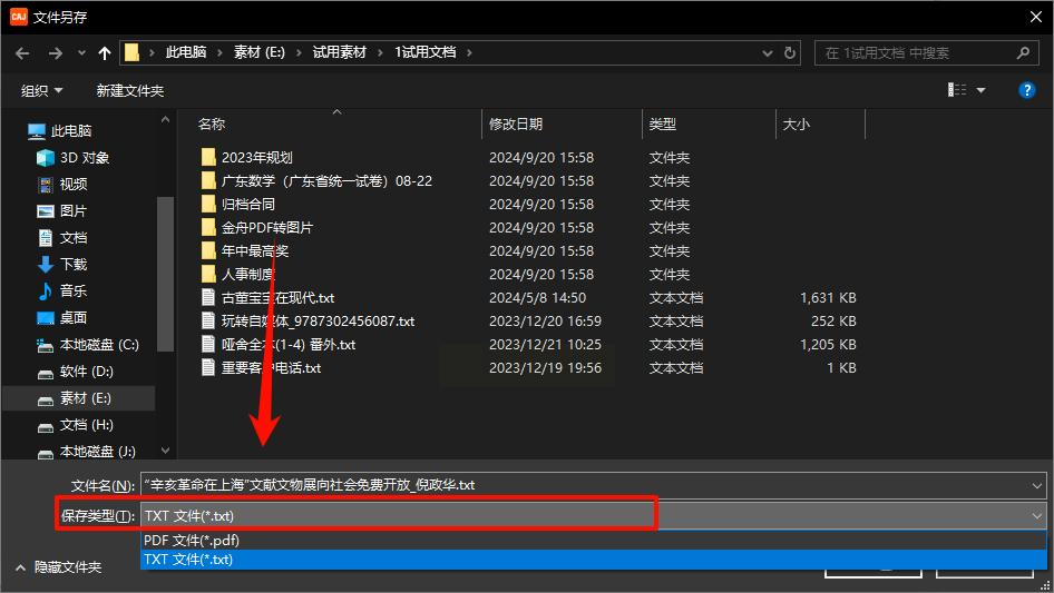步骤三:在弹出的对话框中,将保存类型设置为TXT格式,点击保存。