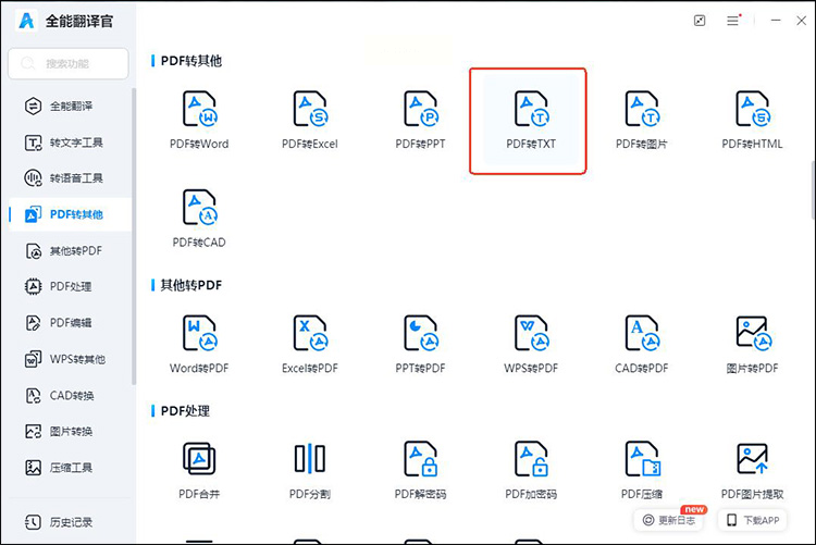 全能翻译官除了翻译功能,还集成了文件格式转换模块,可以处理PDF转TXT等任务。