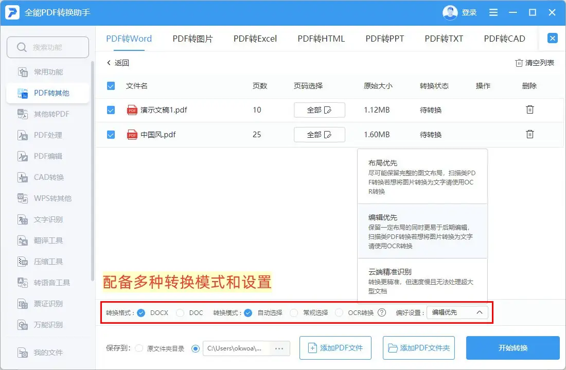 方法一:使用专业格式转换软件(以全能PDF转换助手为例)