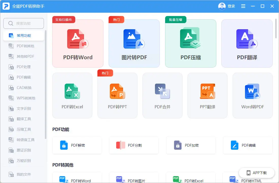 步骤一:启动软件,在主界面中您会看到清晰的功能分类。请找到并点击与PPT转换相关的功能模块,该软件通常支持将PPT转换为PDF、Word等多种常用格式。