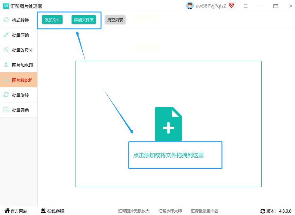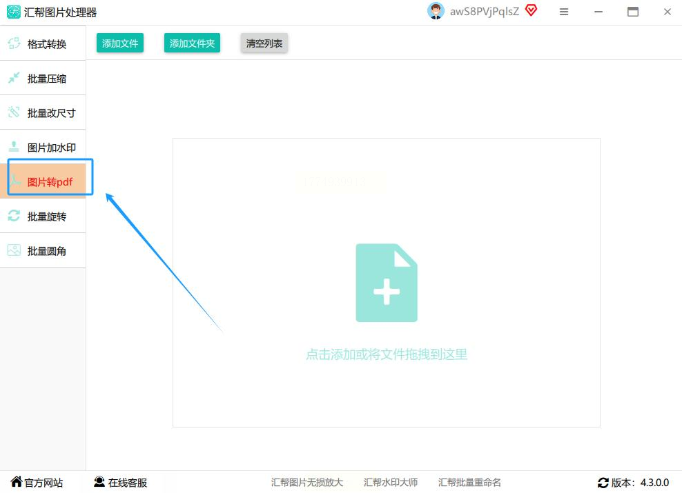 2. 导入图片:点击「添加文件」或直接拖入图片文件夹,支持同时导入不同格式图片(如JPG+PNG混合)。