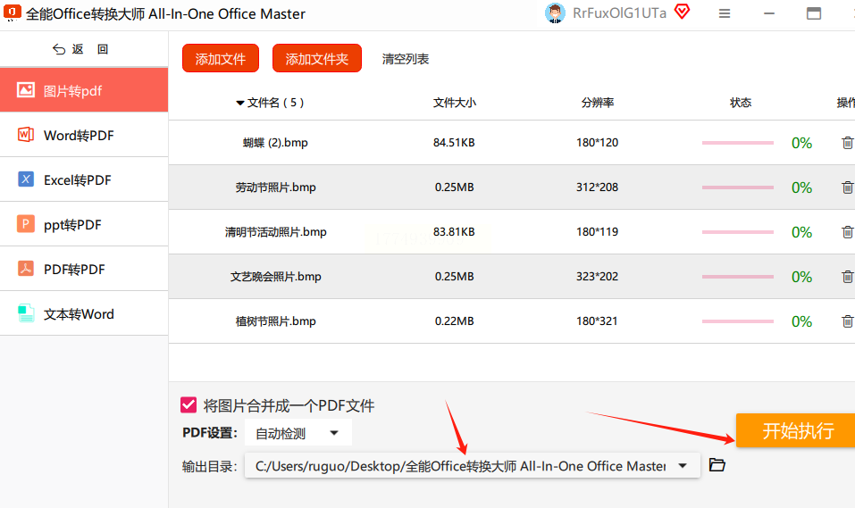 5. 执行转换:点击「开始执行」,进度条完成后自动打开文件夹,可直接查看或分享PDF文件。