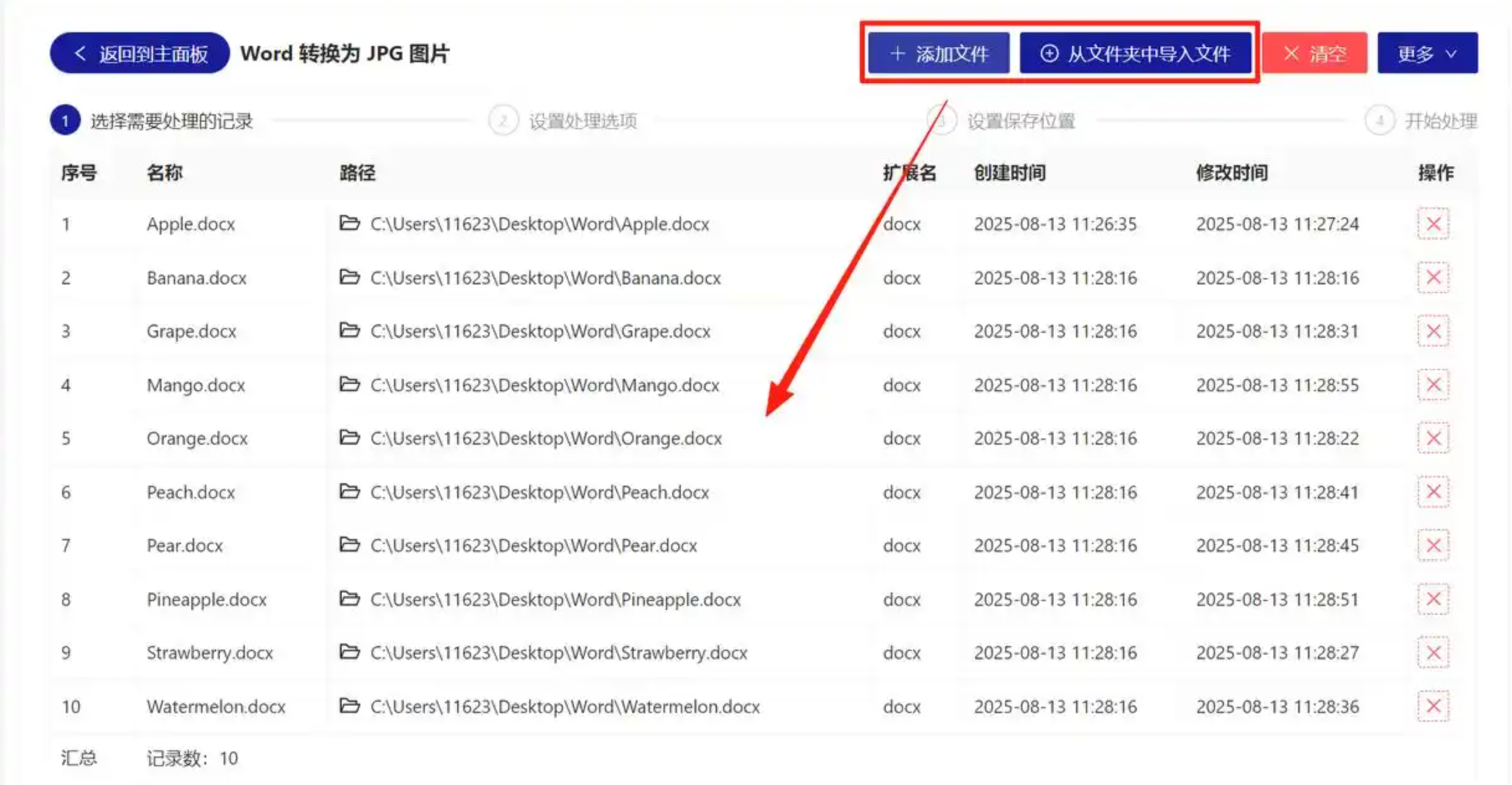 步骤二: 通过“添加文件”按钮或直接拖拽的方式,将需要转换的Word文档导入软件。很多工具都支持批量添加,一次性处理几十个文件也没问题。