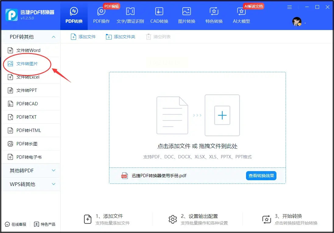 步骤一: 运行这类多功能转换器,在首页或左侧功能栏找到“文件转图片”选项。注意,这里的功能往往不仅限于Word,通常也支持PDF、PPT等格式直接转图片。