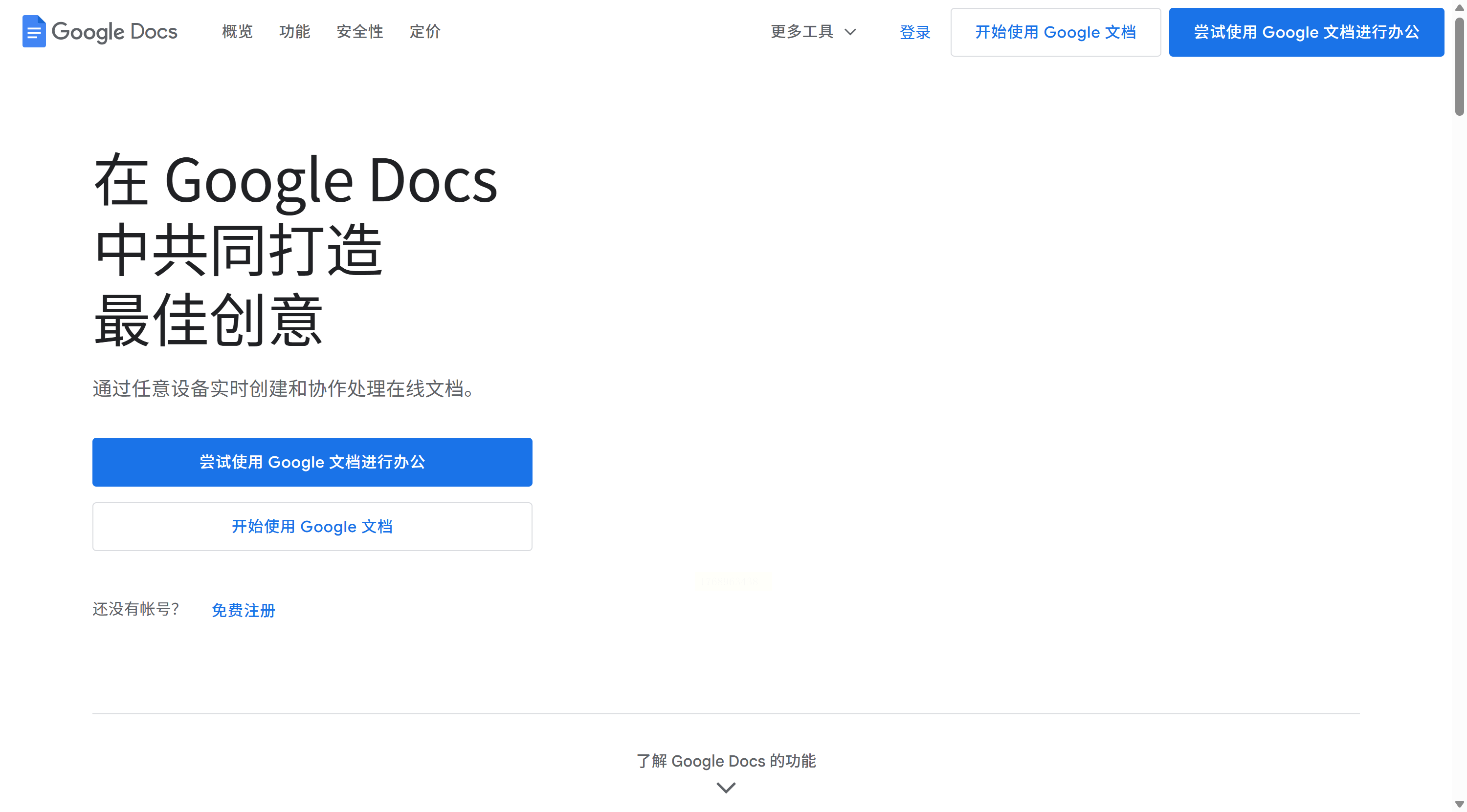 1. 用Chrome浏览器打开docs.google.com,登录你的谷歌账号(如果没注册可以先申请,免费且稳定)。