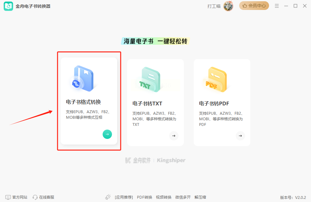 1. 先去官网下载安装包(认准正规渠道),打开软件后,在首页就能看到"电子书格式转换"选项,点击进入专门的转换界面。