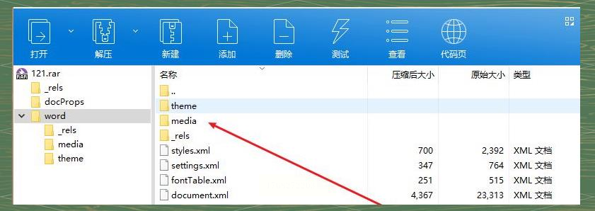 5. 解压完成后,你会得到一个新的文件夹。打开这个文件夹,里面结构有点复杂,别晕。依次打开 “word” 文件夹,然后再进入里面的 “media” 文件夹。