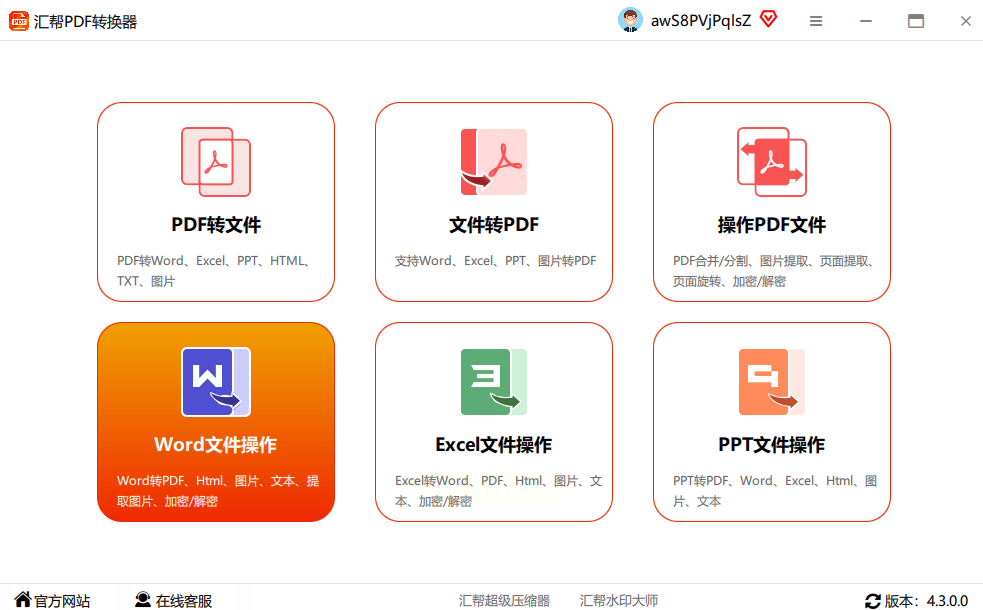 1. 启动“汇帮PDF转换器”软件。在主界面上找找,有没有“文件提取”、“文档处理”或者直接就叫“Word工具”的模块,点进去。