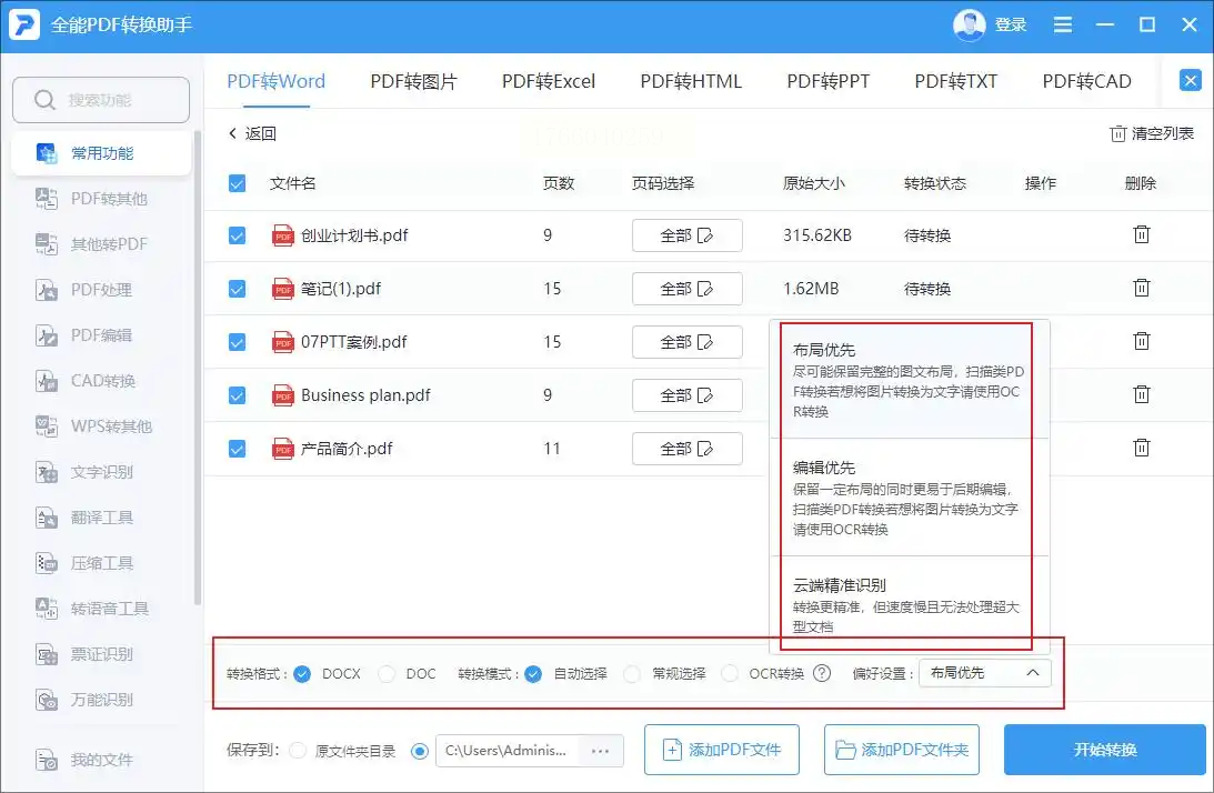 2. 下方可设置转换参数:如“表格优先”“图片压缩”等选项,适合对格式还原度要求高的场景。
