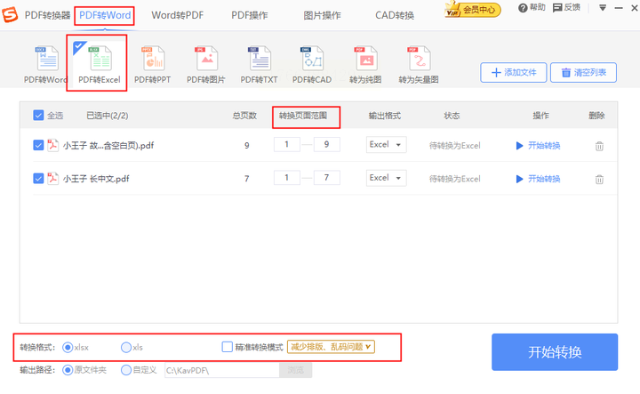 步骤四:根据需要,简单设置输出格式选项,然后点击“开始转换”按钮,等待任务执行完毕即可。